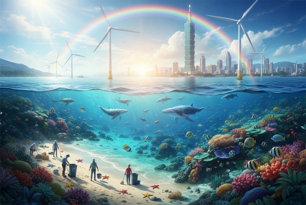 The primary motivation is to use AI visual art to deliver a compelling message to the public regarding Taiwan’s critical ocean crisis (SDG 14). As an island nation, Taiwan’s future is inseparable from its marine environment. The work’s extreme contrast—from industrial chaos to renewable harmony—serves as a visual ultimatum. We aim to inspire a collective commitment to TCE 6 (Environmental Protection) and highlight that the ideal future (achieved through TCE 12 Community Action) is within our reach, provided we act now.